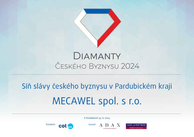 Dne 25. června 2024 byly vyhlášeny výsledky soutěže DIAMANTY českého byznysu v Pardubickém kraji. S potěšením oznamujeme, že společnost MECAWEL byla uvedena do Síně slávy.