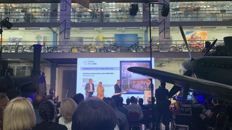 V pondělí 2. září 2024 proběhl v prostorách Národního technického muzea v Praze nominační večer 32. ročníku prestižní soutěžní přehlídky STAVBA ROKU 2024. V konkurenci 116 přihlášených staveb napříč celým spektrem stavební branže uspělo i nové Průmyslové centrum MECAWEL a získalo jednu z 38 nominací na titul Stavba roku 2024! V zastoupení investora a projektanta převzali nominační diplom p. Petr Hubálek (MECAWEL) a p. Petr Labuzík (KOHL ARCHITEKTI).